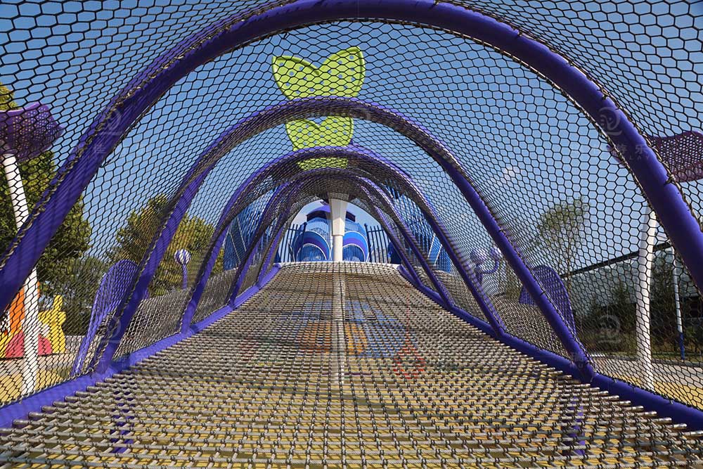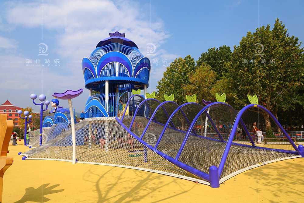 蓝莓密林魔网攀爬区是专为低龄儿童设计的“低空探索乐园”,以蓝莓为主题造型,将攀爬网与趣味小型无动力设备相结合,既还原穿梭蓝莓园的沉浸感,又通过低强度攀爬锻炼孩子肢体能力,是安全与趣味并存的核心游玩区。